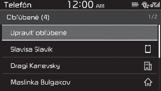 Na obrazovke Phone (Telefón) stlačte tlačidlo [1], ak chcete vybrať možnosť Favourites (Obľúbené).
