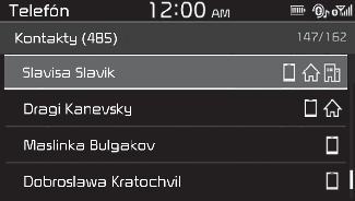 Kontakty je možné zobraziť len vtedy, keď je zariadenie s funkciou Bluetooth pripojené.