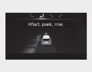 Ak funkcia už rozpoznala parkovacie miesto pred aktiváciou parkovacieho asistenta, budete vidieť hlásenia „Parking search“ (Hľadanie parkovania) alebo „Space found“ (Našlo sa miesto).