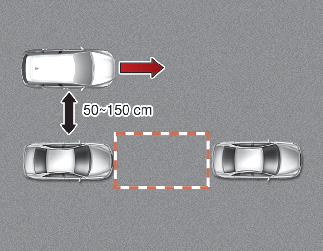 Pomaly jazdite dopredu a pri zaparkovaných vozidlách udržujte vzdialenosť približne 50 ~ 150 cm (19,6 ~ 59,0 palcov). Ak nie je v dosahu, funkcia nemusí byť schopná vyhľadať parkovacie miesto.