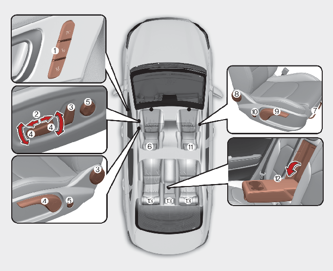 * Bilens faktiske sæder kan se anderledes ud end på illustrationen.