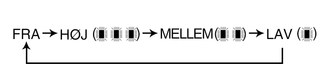 Luftstrømmen ændres som følger for hver gang der trykkes på knappen: