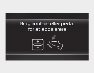 (Brug kontakt eller pedal for at accelerere) desuden i klyngen. Tryk på gaspedalen, eller tryk på +, - eller
