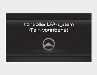 Når Vognbaneassistent (følg vognbanen) ikke fungerer korrekt, vises advarselsmeddelelsen 'Kontrollér Vognbaneassistent (følg
