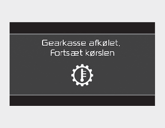 Hvis koblingen overophedes, tilkobles funktionen for sikker kørsel, kontrollampen for gearets position blinker på Instrumentklyngen, og der høres en kimen. På dette tidspunkt vises advarselsmeddelelsen "Transmission temp. is high! Stop safely" (Gearkassetemperatur er høj! Stands bilen!) på LCD-skærmen, og kørslen bliver måske ujævn.