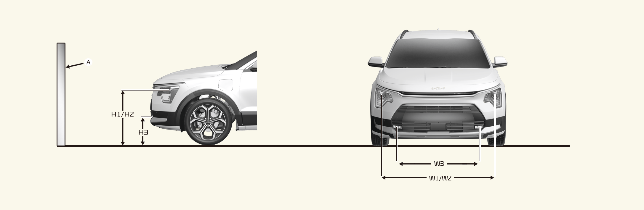 Rajzoljon a képernyőre függőleges vonalakat (amelyek az adott fényszórók középpontjain haladnak át) és egy vízszintes vonalat (amely a fényszórók középpontján halad át).