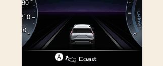 A chime will sound and the coasting guide indicator will be displayed to inform the driver when to take the foot off the accelerator by anticipating a decelerating event* based on the analysis of driving routes and road conditions stored in the navigation system. It encourages the driver to remove the foot from the pedal and allow coasting down the road with EV motor only. This helps preventing unnecessary fuel consumption and increases fuel efficiency. * Example of a deceleration event is going down an extended hill, slowing down approaching a toll booth, and approaching reduced speed zones.