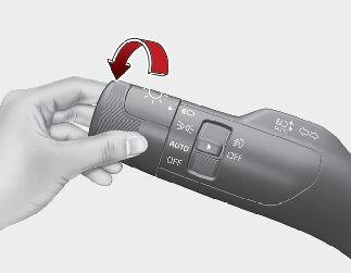 To operate the lights, turn the knob at the end of the control lever to one of the following positions: