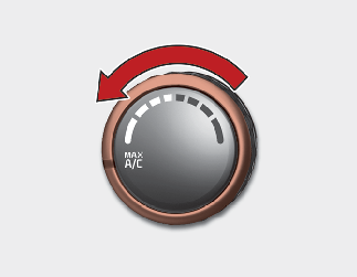 To operate the MAX A/C, turn the temperature knob all the way to the left. Air flow is directed toward the upper body and face.