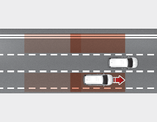 When changing lanes by detecting the lane ahead, if the function judges that there is a collision risk with an approaching vehicle in the blind spot, the function will help avoid a collision by applying the brake.