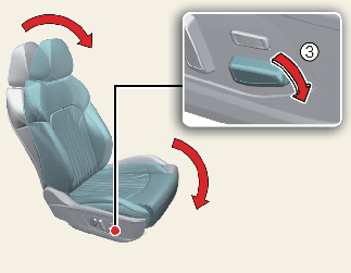 Para reclinar el asiento del pasajero delantero hacia delante, pulse el interruptor (3). Para reclinar el asiento del pasajero delantero hacia atrás, presione el interruptor (4).