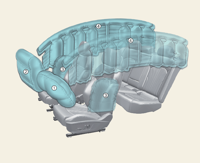 * Los airbags reales en el vehículo pueden diferir de la ilustración.
