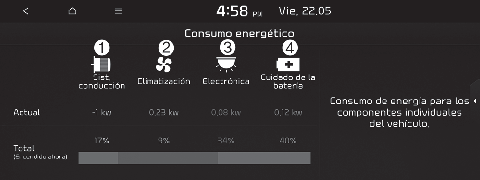 Permite comprobar el consumo de energía actual para cada sistema del vehículo.