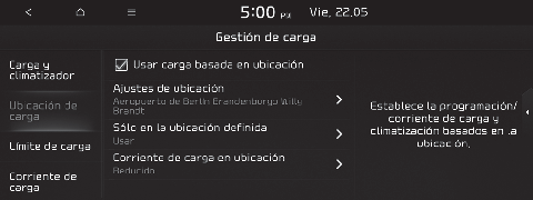 Si se selecciona la carga en función de la ubicación, la carga programada y la temperatura objetivo se activarán en la ubicación que ha establecido el conductor. Asimismo, la carga actual se puede seleccionar para que se aplique en la ubicación designada.