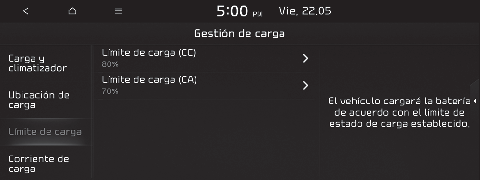 Si el nivel de carga objetivo de la batería es inferior al nivel de carga de la batería de alto voltaje, la batería no se cargará.