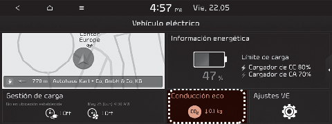 Seleccione "EV (vehículo eléctrico) → ECO Driving (conducción ECO)" en la pantalla.