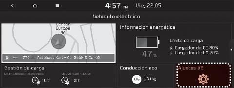 Seleccione "EV (vehículo eléctrico) → EV Setting (configuración de EV)" en la pantalla.