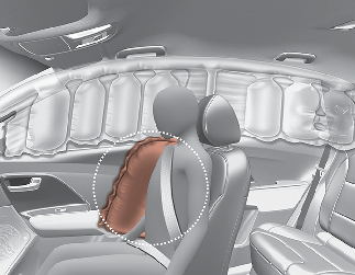 Para una mejor protección del sistema del airbag de impacto lateral y para evitar lesiones por el despliegue del airbag de impacto lateral, ambos ocupantes del asiento delantero deben estar sentados en posición vertical con el cinturón correctamente colocado.