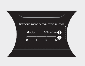 El consumo instantáneo de energía se muestra en función del gráfico de barras en la pantalla LCD durante la conducción.