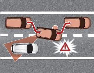 Es posible que la asistencia de prevención de colisión en punto ciego active el control electrónico de estabilidad (ESC) en función de la posibilidad de que se produzca una colisión con un vehículo que se acerca mientras cambia de carril. Sirve para reducir el riesgo de colisión o mitigar los daños de la colisión.