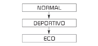 El modo cambia, como se indica a continuación, cada vez que se pulsa el botón DRIVE MODE (modo de conducción).