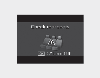 When you open the front door after opening and closing the rear door and turning off the engine, the "Check rear seats" warning message appears on the cluster.