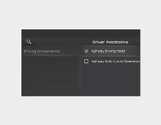 With the engine on, select 'Driver Assistance → Driving Convenience → Highway Driving Assist' from the Settings menu to set whether to use each function.