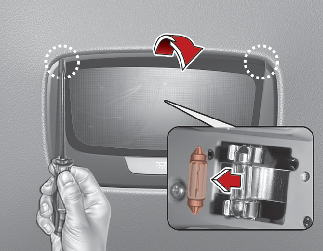 Prior to working on the Interior lamps, ensure that the "OFF" button is depressed to avoid burning your fingers or receiving an electric shock.
