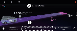 If the target temperature (1) is set with the cable connected, the cabin temperature will be adjusted to the target temperature at departure time. In cold weather, pre-scheduled heating helps enhance electric vehicle performance by heating the vehicle in advance.