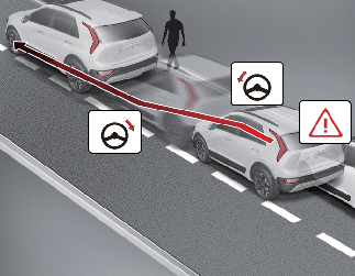 Evasive Steering Assist function helps avoid a collision with a pedestrian or cyclist ahead in the same lane. When a risk or collision is detected, Evasive Steering Assist function will warn the driver and if there is space to avoid collision in the lane, it will assist the driver's steering.