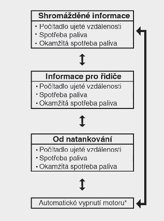 Po doplnění více než 6 litrů paliva a jízdě rychlostí vyšší než 1 km/h se ukazatel hodnot od posledního doplnění paliva vynuluje automaticky.