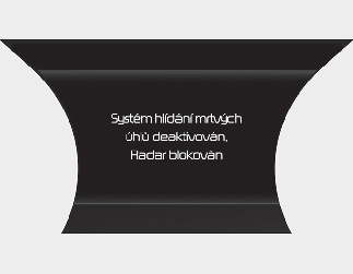 Asistenční systém pro předcházení kolizím v mrtvém úhlu nemusí fungovat 15 sekund po nastartování vozidla nebo pokud zadní radarová čidla nejsou inicializována.