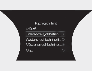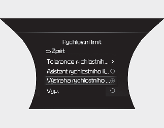 Pokud zvolíte 'Off' (Vypnuto), inteligentní asistent pro rychlostní omezení se vypne.