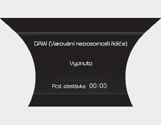Je-li v části User Settings (Uživatelská nastavení) na LCD displeji nebo v části Settings (Nastavení) → Vehicle (Vozidlo) na obrazovce informačního systému zrušen výběr volby Inattentive Driving Warning (Varování při nesoustředeném řízení), zobrazí se zpráva System Off (Systém je vypnutý).
