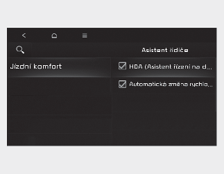 Vyberete-li volbu asistenta jízdy na dálnici, asistent vám bude pomáhat při udržování odstupu od vozidla vpředu, udržování nastavené rychlosti a udržování vozidla v jízdním pruhu.
