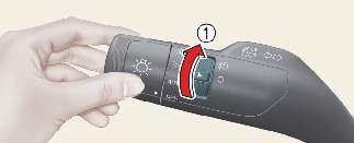 Les phares antibrouillard s’allument lorsque le commutateur de phares antibrouillard (1) est mis en position de marche après l’allumage des phares.