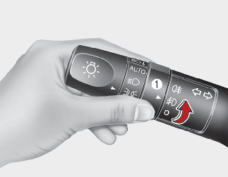 霧燈用於霧、雨、雪等導致能見度不良時提高能見度。停車燈 ON 後,打開霧燈開關 (1) 時霧燈亮。