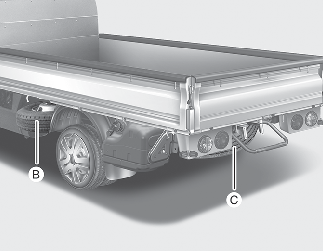 * A. 輪胎支撐鉤 B. 前輪胎 C. 後輪胎