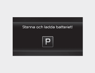 Om detta inträffar ska du parkera bilen på ett säkert ställe och vänta tills hybridbatteriet har laddats.