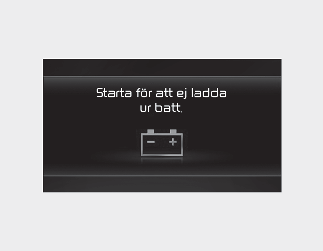 Om motorn inte har slagits på med ENGINE START/STOP-knappen (motor start/stopp) i ACC eller ON på ett tag kan batteriet laddas ur. Slå på motorn för att förhindra att 12V-batteriet laddas ur.