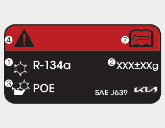 Symbolerna och specifikationer på luftkonditioneringens kylmedelsmärkning har följande betydelser: