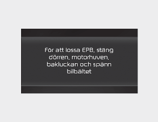 Om situationen ovan uppstår ska du trycka ner bromspedalen och frigöra EPB genom att trycka på EPB-knappen.