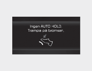 Auto Hold och EPB kanske inte fungerar korrekt när detta meddelande visas. För din säkerhet: tryck på bromspedalen.