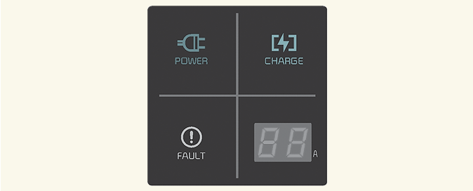 Avant de brancher le connecteur de charge dans le véhicule (POWER vert ACTIVÉ, FAUTE rouge clignotant)