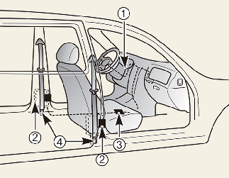 * La position réelle des composants du système de pré-tendeur de ceinture de sécurité peut différer de l'illustration.