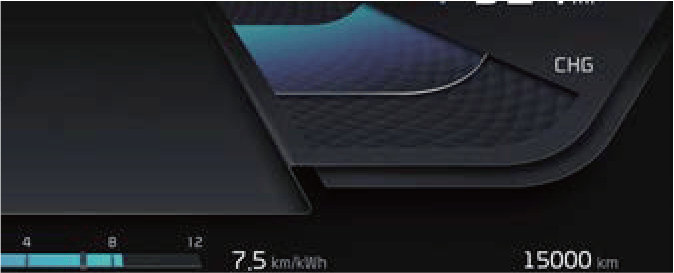 CHG (Charge) : Indique l'état de charge de la batterie lorsqu'elle est rechargée par le freinage régénératif (décélération ou conduite dans une descente). Plus on charge d'énergie électrique, moins le niveau de la jauge est élevé.