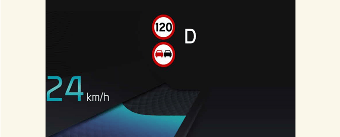 L'assistant de limitation de vitesse intelligent avertira et contrôlera le véhicule avec la fonction « Displaying speed limit» (Affichage de la limite de vitesse), « Warning overspeed » (Avertissement d'excès de vitesse) et « Changing set speed » (Modification de la vitesse réglée).