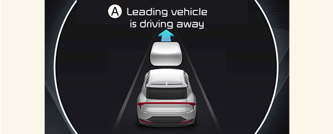 L'Alerte de départ du véhicule de tête est une fonction supplémentaire et peut ne pas alerter le conducteur lorsque le véhicule avant s'écarte d'un arrêt.