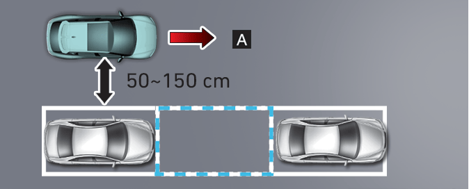 Au moment où le véhicule est arrêté en appuyant sur la pédale de frein, les capteurs du véhicule détectent la distance par rapport aux objets proches et déterminent l'espace nécessaire pour sortir.