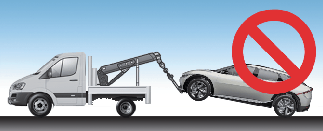 Si vous remorquez le véhicule avec les roues arrière (ou les roues avant et arrière pour les véhicules à rouage intégral (AWD)) qui touchent le sol, le moteur du véhicule peut produire de l'électricité et les composants du moteur peuvent être endommagés ou un incendie peut se déclarer.